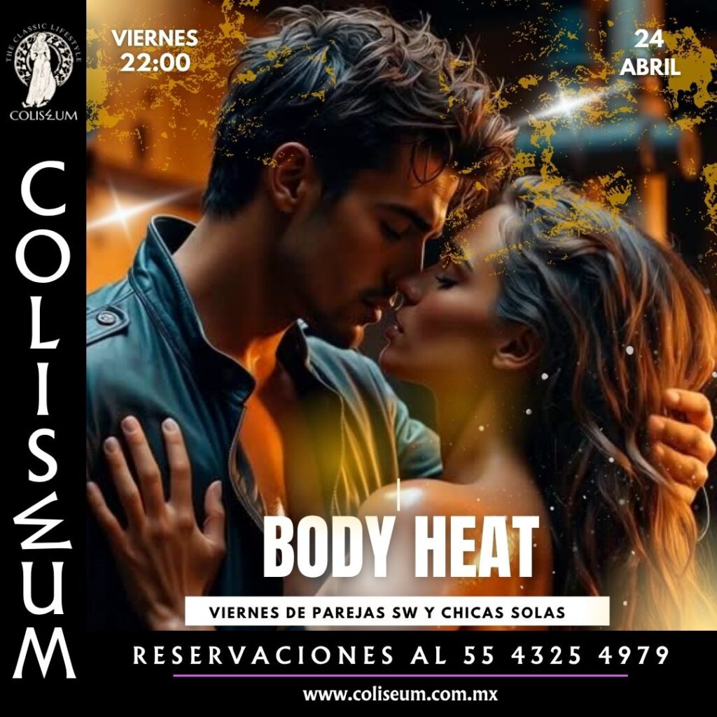 Abril 24 – Body Heatfor swingers onlyviernes de parejas + chicas solas Haz click aquí para reservaro llama al 55 4325 4979Te EsperamosVer más Eventos